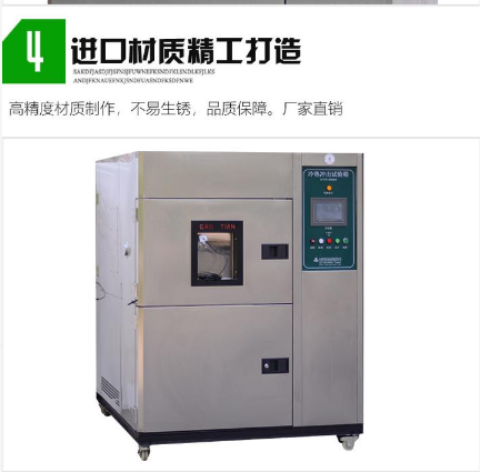 湖北高天生產銷售冷熱沖擊試驗箱、高低溫冷熱沖擊試驗箱、就型號分為大型和小型,就材質分為:不銹鋼和烤漆,就結構分為:三箱式和二箱式,風冷和水冷,冷熱沖擊試驗箱是金屬、塑料、橡膠、電子等材料行業必備的檢測設備,用于測試材料結構或復合材料,在瞬間下經極高溫度及極低溫度的連續環境下所能忍受的程度,得以在zui短的時間內,試驗其因熱脹冷縮所引起的化學變化或物理傷害。